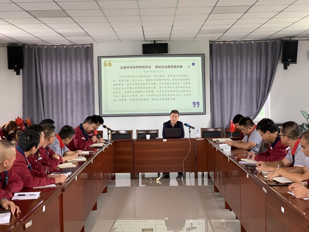 為深入學(xué)習(xí)貫徹習(xí)近平新時(shí)代中國(guó)特色社會(huì)主義思想及習(xí)近平總書記關(guān)于傳承和弘揚(yáng)中華優(yōu)秀傳統(tǒng)文化重要論述,進(jìn)一步增強(qiáng)干部職工傳統(tǒng)文化自信,凝聚國(guó)有企業(yè)高質(zhì)量發(fā)展力量。8月28日,榆橫工業(yè)廢渣處理公司舉辦了“弘揚(yáng)中華優(yōu)秀傳統(tǒng)文化、推動(dòng)企業(yè)高質(zhì)量發(fā)展”文化講座。本次活動(dòng)特邀榆林市政協(xié)聯(lián)誼會(huì)生態(tài)環(huán)保委主任馮文生教授為全體干部職工授課。