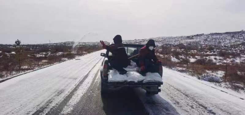 為了確保生產道路交通和群眾出行安全,防范大雪帶來的安全隱患,工業(yè)廢渣處理公司機械隊隊長高喜紅響應號召,攜馮江文同志投入兩臺大型裝載機對主要道路進行全面清雪作業(yè),并組織竇海建、郝誠、姬文偉三位同志開展道路撒融雪劑作業(yè),為群眾出行和生產道路保駕護航。