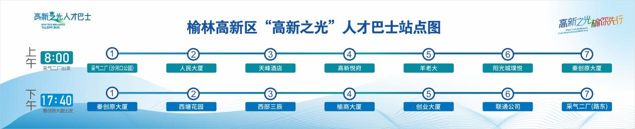 人才專線在路線的設(shè)置上充分考慮了創(chuàng)業(yè)者在高新區(qū)政務(wù)、交通、工作、生活等方面因素,共設(shè)7個站點,北起采氣二廠,南至秦創(chuàng)原大廈,沿途經(jīng)過高新區(qū)的人民大廈、創(chuàng)業(yè)大廈、榆商大廈、榆林大劇院、秦創(chuàng)原大廈等地標(biāo)性建筑。