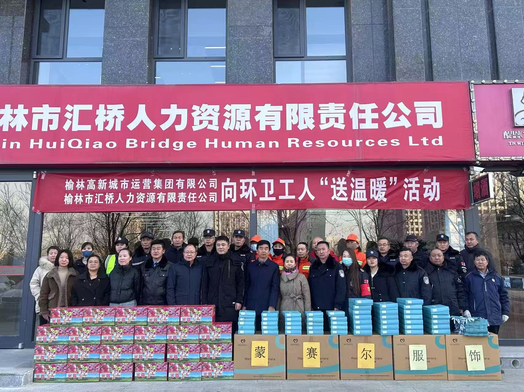 2024年12月24日下午,榆林市匯橋人力資源有限責任公司舉行向環(huán)衛(wèi)工人、保安“送溫暖”活動,為城市運營集團公司廣場公園92名一線環(huán)衛(wèi)工、保安贈送了蘋果、防寒服等慰問品。
