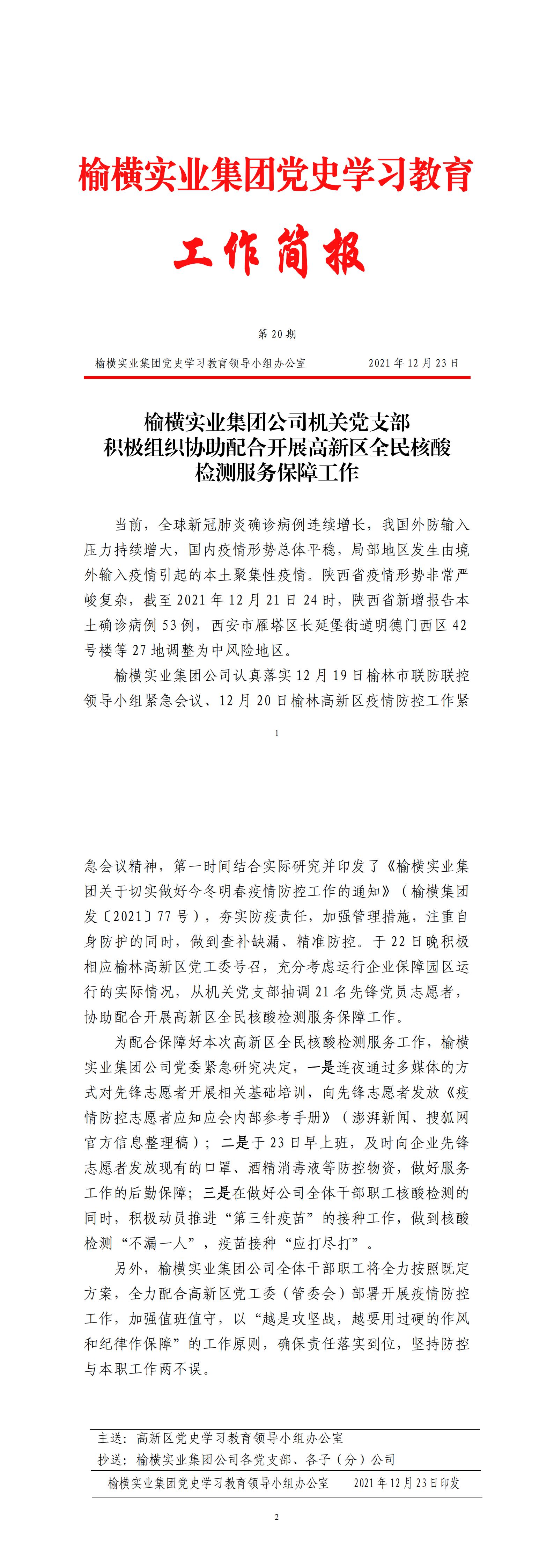 榆橫實(shí)業(yè)集團(tuán)公司機(jī)關(guān)黨支部 積極組織協(xié)助配合開展高新區(qū)全民核酸 檢測(cè)服務(wù)保障工作