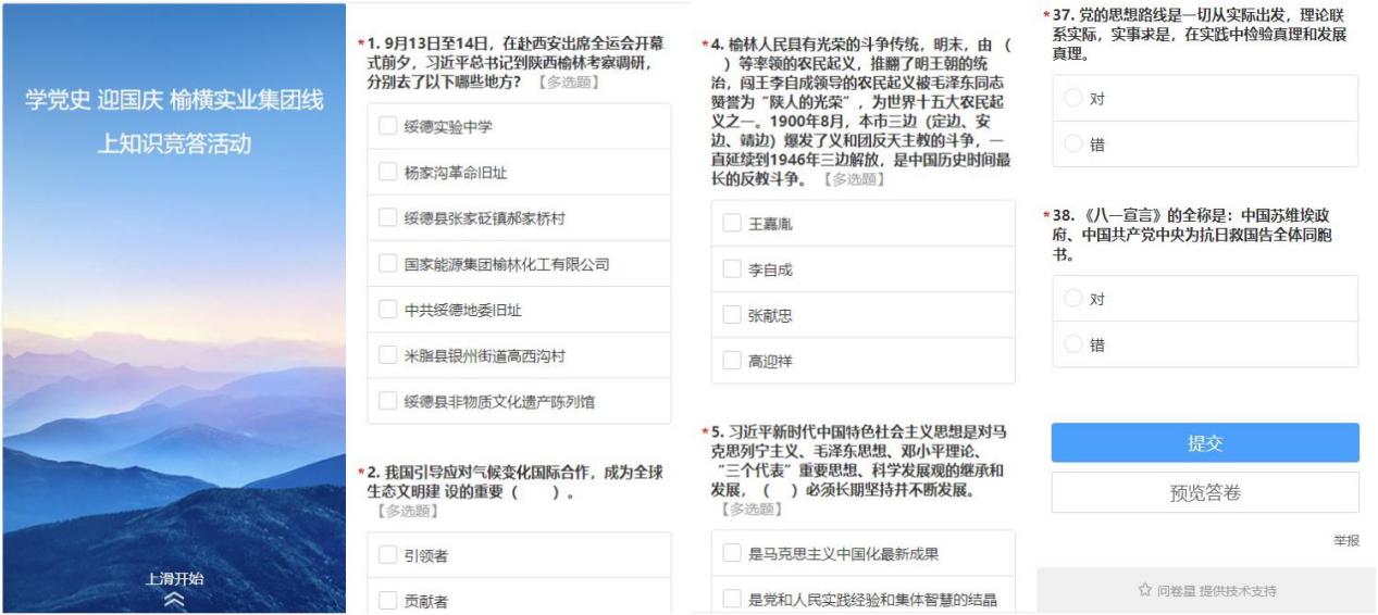 本次黨史學習教育知識競答試卷共設置題目38道,其中多選題6道、單選題16道、填空題10道、判斷題6道,滿分為120分,內容包括黨史、新中國史、改革開放史、社會主義發(fā)展史等歷史知識及近期相關事實政治內容。榆橫實業(yè)集團公司干部職工積極參與,通過掃描微信二維碼,進入答題界面完善個人信息后,開始電子答題,每人限答題1次,活動參與率90%以上、答題平均分104.48分。
