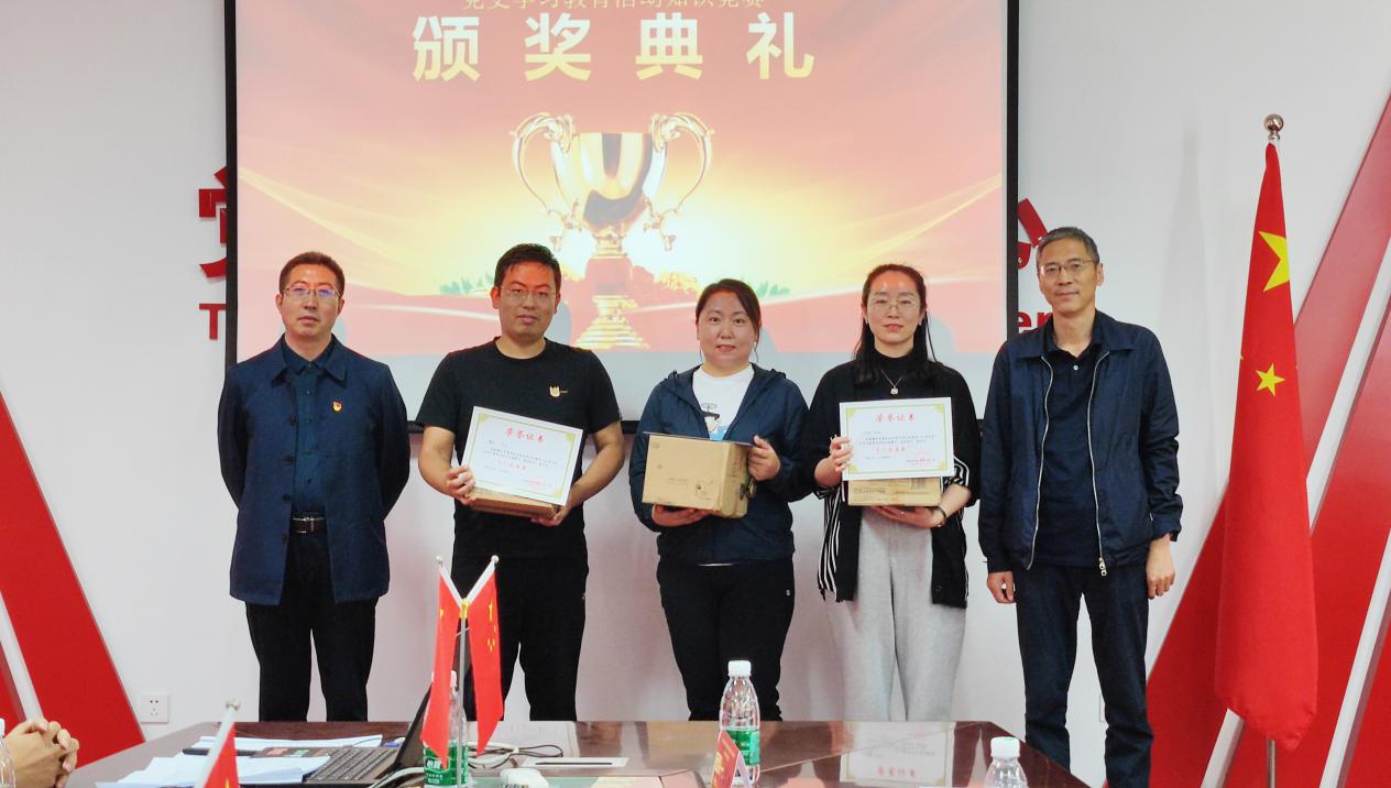 本次知識(shí)競賽內(nèi)容涵蓋黨史、新中國史、改革開放史、社會(huì)主義發(fā)展史等方面內(nèi)容,分為必答題、搶答題、風(fēng)險(xiǎn)題和附加題四個(gè)環(huán)節(jié)。在現(xiàn)場主持人、支部組織委員封春雨的引導(dǎo)下,知識(shí)競賽有序進(jìn)行,各參賽隊(duì)員精神飽滿、沉穩(wěn)機(jī)智,以較為豐富的知識(shí)儲(chǔ)備和精彩的作答贏得了現(xiàn)場陣陣掌聲,充分展示了其黨史理論知識(shí)學(xué)習(xí)成果和奮勇爭先、團(tuán)結(jié)一心、積極向上的精神風(fēng)貌。最終經(jīng)過激烈角逐,隨機(jī)抽取、現(xiàn)場組合、當(dāng)場取名的王者榮耀隊(duì)、海軍隊(duì)、不忘初心隊(duì)分別獲得團(tuán)隊(duì)第一名、第二名和第三名,曹超、方忠艷、徐文霞榮獲個(gè)人風(fēng)采獎(jiǎng)。