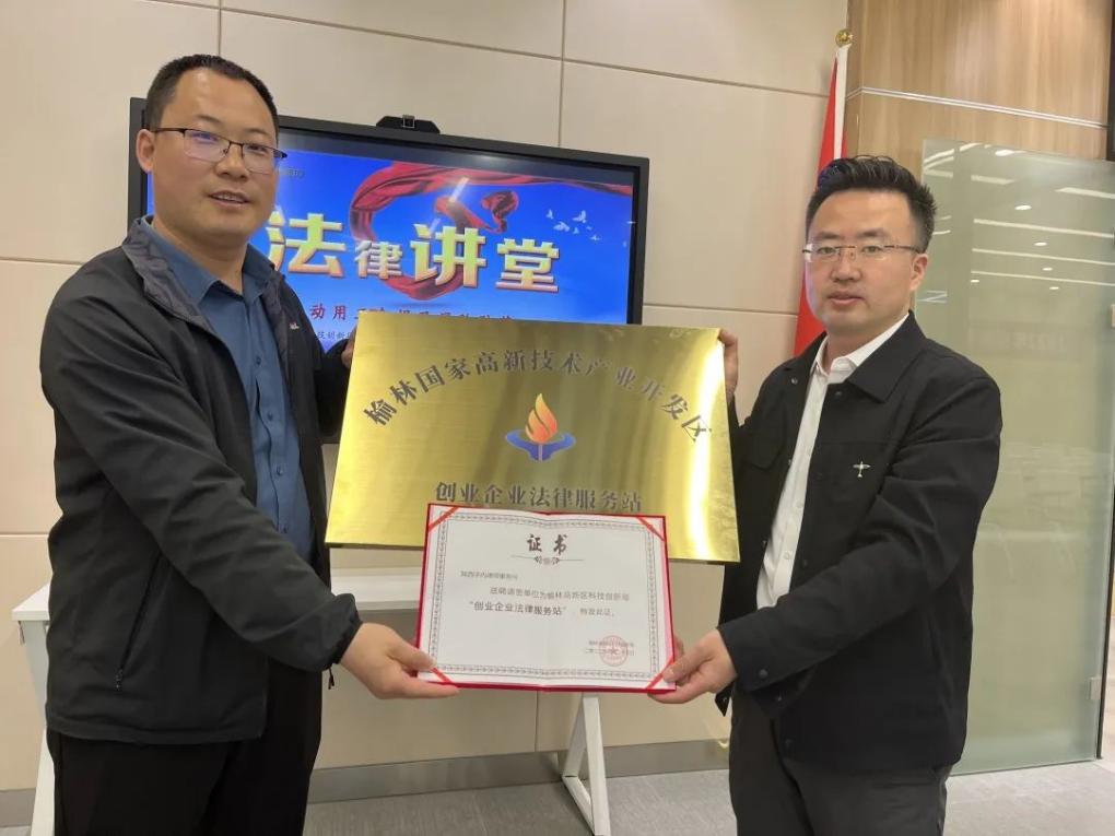 講座最后,榆林高新區(qū)科技創(chuàng)新局向陜西宇內(nèi)律師事務(wù)所頒發(fā)“榆林高新區(qū)創(chuàng)業(yè)企業(yè)法律服務(wù)站”匾牌。