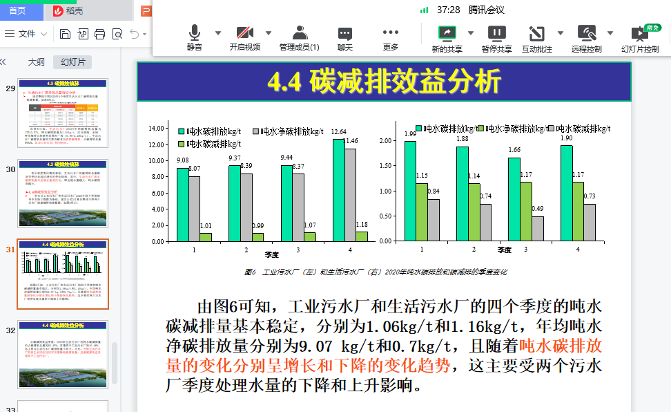 中國(guó)是世界上主要的二氧化碳排放國(guó)(約占全球30%),工業(yè)部門的碳排放占全國(guó)的50%以上(污水處理約占2-5%)。為深入研究污水處理廠碳排放與碳減排路徑,在公司的領(lǐng)導(dǎo)和技術(shù)科的牽頭組織下,生產(chǎn)科、機(jī)電科、化驗(yàn)科、綜合科等科室積極參與,共同核算和分析了工業(yè)污水廠碳排放量和中水回用、分鹽結(jié)晶改造后的碳減排效益,撰寫論文并投稿。